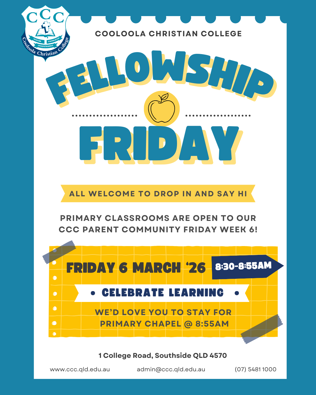 We also look forward to connecting with you at Fellowship Friday. It’s a wonderful opportunity to see kindness and community in action as we strengthen the partnership between home and school.